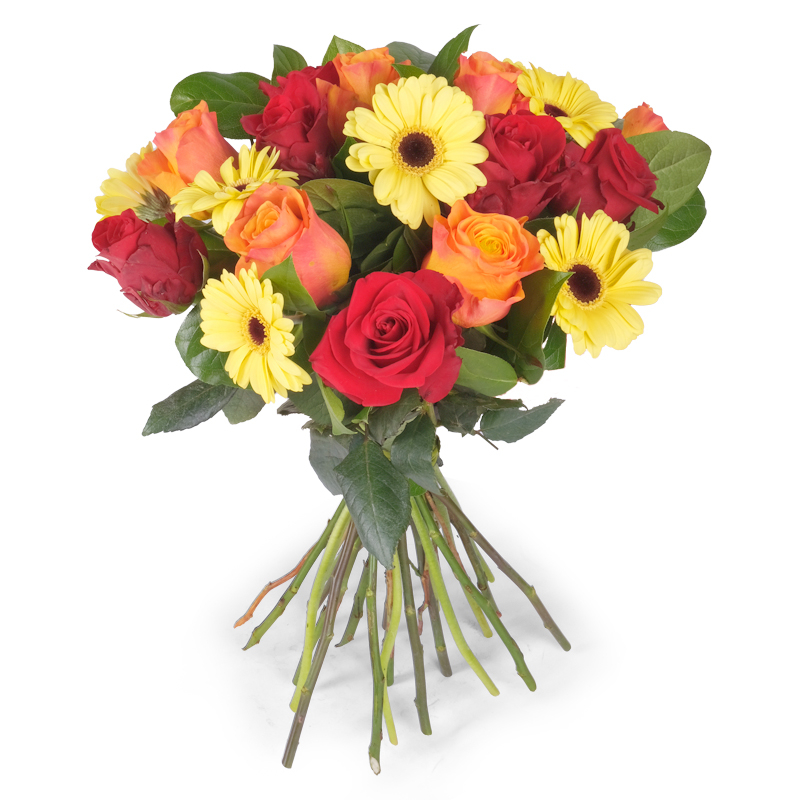 Zawsze świeże kwiaty                                      Bukiet „Złote Szaleństwo” to elegancka interpretacja radości. Róże i gerbery pięknie współgrają, tworząc spójną całość. To bukiet, który wprowadza świeżość i uśmiech. Idealny wybór na każdą okazję. Kompozycja, która tchnie optymizmem nawet największego ponuraka!